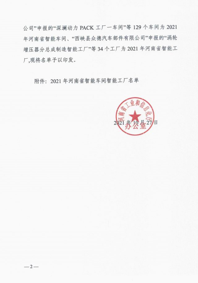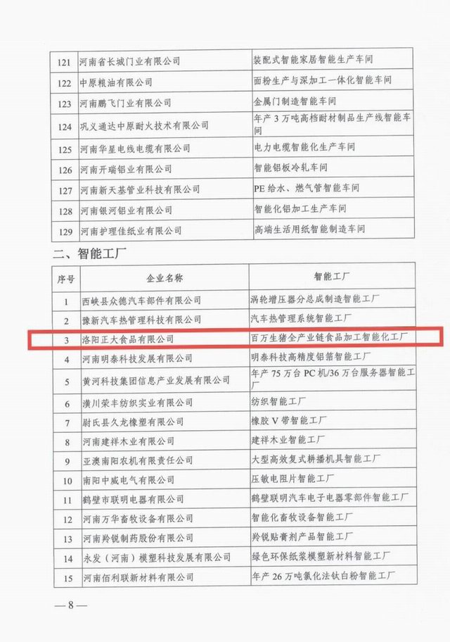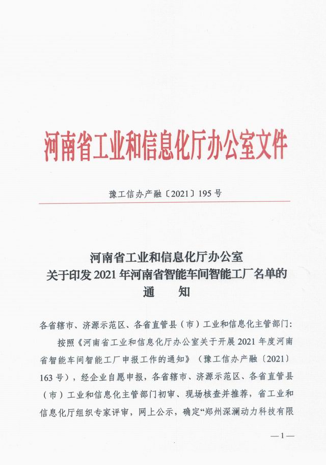 按照《河南省工業(yè)和信息化廳辦公室關于開展2021年度河南省智能車間智能工廠申報工作的通知》(豫工信辦產融〔2021〕163號),經(jīng)企業(yè)志愿申報、各地工業(yè)和信息化主管部門初審和現(xiàn)場核查、省工業(yè)和信息化廳組織專家評審、網(wǎng)上公示,河南省工業(yè)和信息化廳確定129個智能車間為2021年河南省智能車間、34個智能工廠為2021年河南省智能工廠。2021年10月27日,河南省工業(yè)和信息化廳辦公室下發(fā)文件《河南省工業(yè)和信息化廳辦公室關于印發(fā)2021年河南省智能車間智能工廠名單的通知》(豫工信辦產融【2021】195號)予以公布。洛陽正大獲評2021年河南省智能工廠!