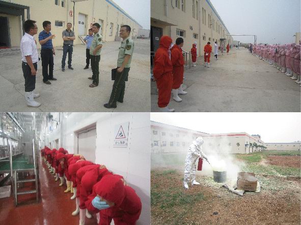 吉林德惠寶源豐禽業(yè)發(fā)生特大事故,造成120人遇難,在全國(guó)安全月伊始之時(shí)發(fā)生如此重大事故,教訓(xùn)慘痛。為吸取這一慘痛的經(jīng)驗(yàn)教訓(xùn),落實(shí)于董事長(zhǎng)關(guān)于安全整頓的要求,進(jìn)一步增強(qiáng)員工安全意識(shí)和自我救助能力,公司于2013年6月7日在各分廠車間、制冷機(jī)房和廠區(qū)空地三處演習(xí)地點(diǎn)舉行了緊急疏散、液氨泄漏緊急處置和消防滅火的實(shí)戰(zhàn)演練。