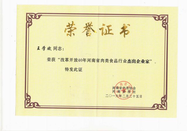 榮譽(yù)‖洛陽(yáng)正大獲評(píng)改革開(kāi)放40年河南肉類(lèi)食品行業(yè)強(qiáng)勢(shì)企業(yè)、王學(xué)斌***總裁榮獲改革開(kāi)放40年河南肉類(lèi)食品行業(yè)杰出企業(yè)家