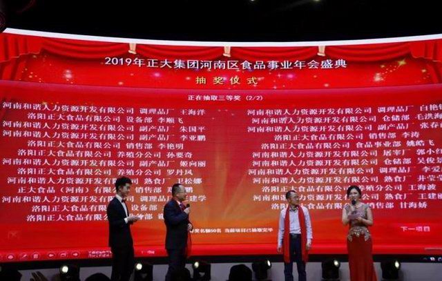 2019年1月21日,“龍頭騰起攬全月,鴻鵠展翅傲中原”——正大集團(tuán)河南區(qū)食品事業(yè)2019新春年會(huì)在洛陽(yáng)東華大酒樓盛大召開(kāi)。正大集團(tuán)農(nóng)牧食品企業(yè)(中國(guó))副董事長(zhǎng)王鴻章、正大集團(tuán)河南區(qū)食品事業(yè)***總裁王學(xué)斌、正大集團(tuán)河南區(qū)產(chǎn)業(yè)化總裁宋小兵及河南區(qū)食品事業(yè)各公司部門主管、員工代表300余人齊聚一堂,共享盛典。年會(huì)特邀河南東方正大有限公司洛陽(yáng)飼料廠董事長(zhǎng)茹懷智、中方副總經(jīng)理黃天發(fā)及河南和諧人力資源開(kāi)發(fā)有限公司董事、總經(jīng)理王縣委、副總經(jīng)理張麗云參加。